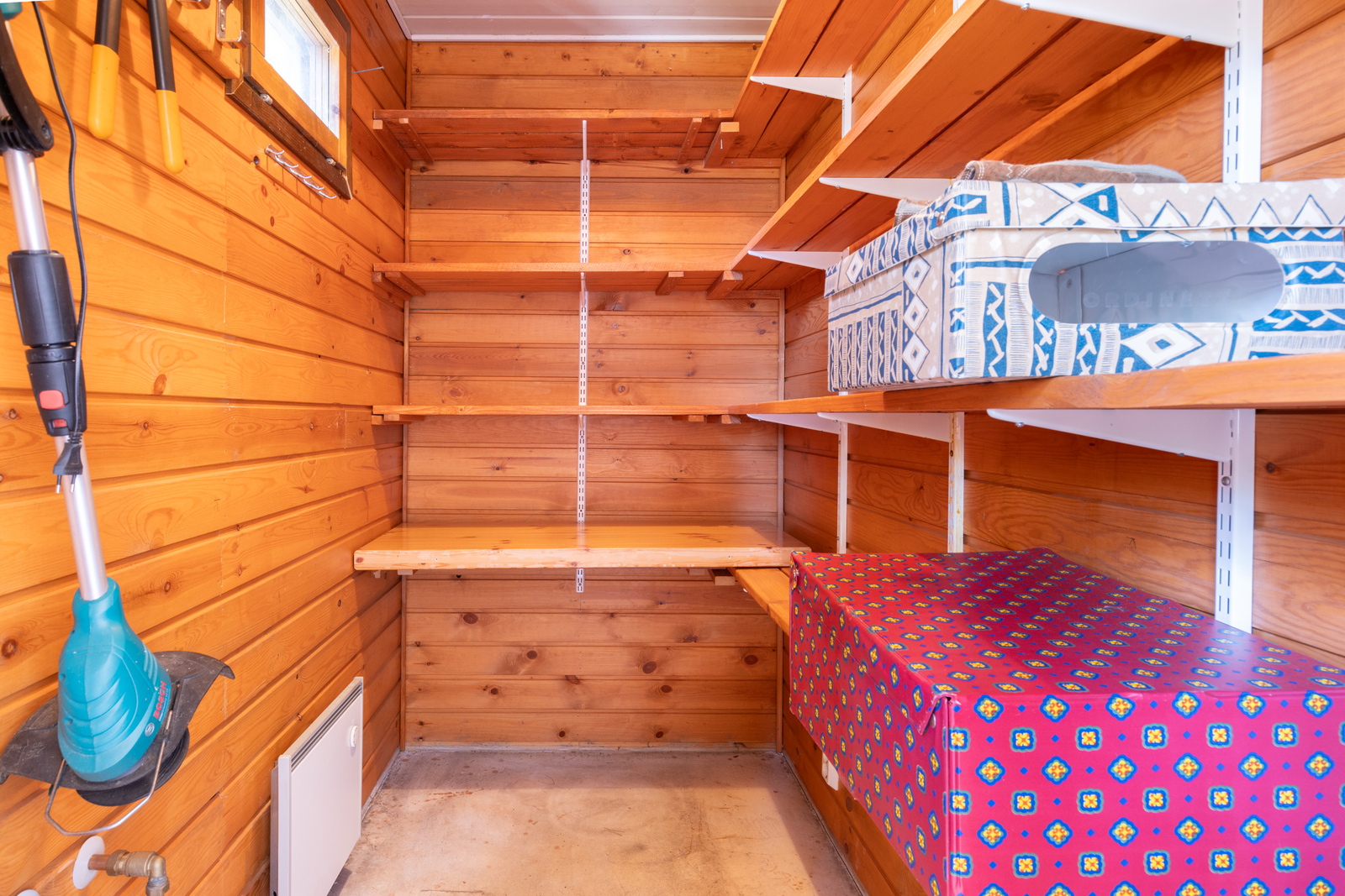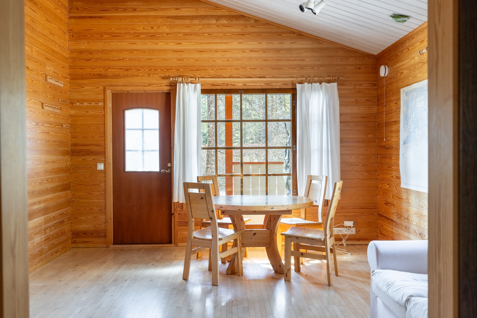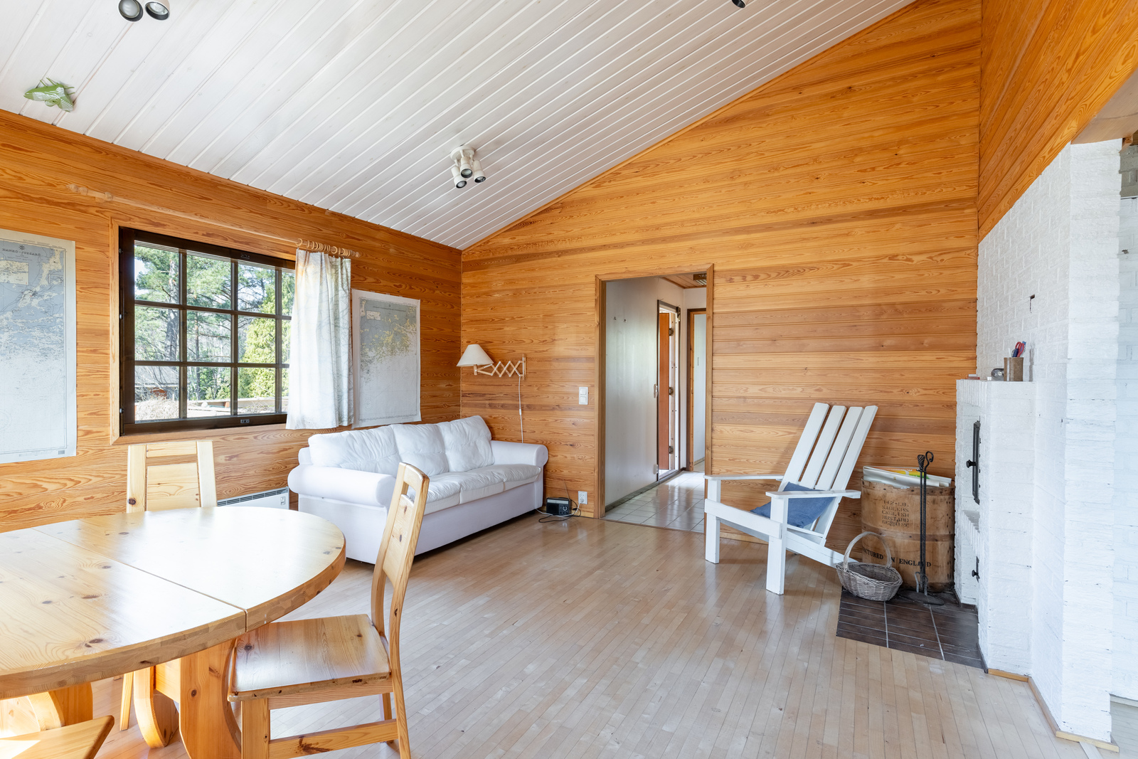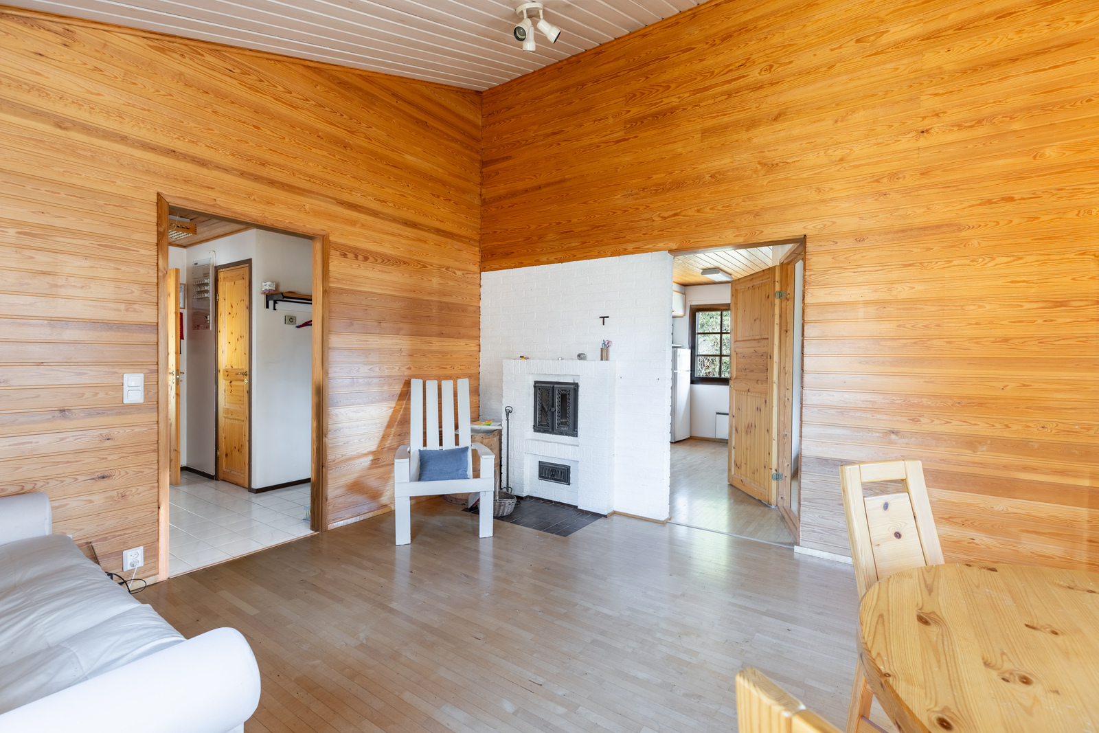 Planlösningen är funktionell och mångsidig: ett rymligt vardagsrum, kök, två sovrum, ett stämningsfullt allrum med öppen spis samt egen bastu och badrum skapar en bekväm helhet för året runt-bruk. Stugan är i ursprungligt men prydligt skick, vilket ger möjlighet att njuta direkt eller uppdatera enligt egen smak.